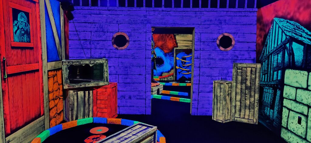 Embark on an adventure with our 9-hole, glow-in-the-dark, pirate-themed Mini Golf! A thrilling experience for all ages.